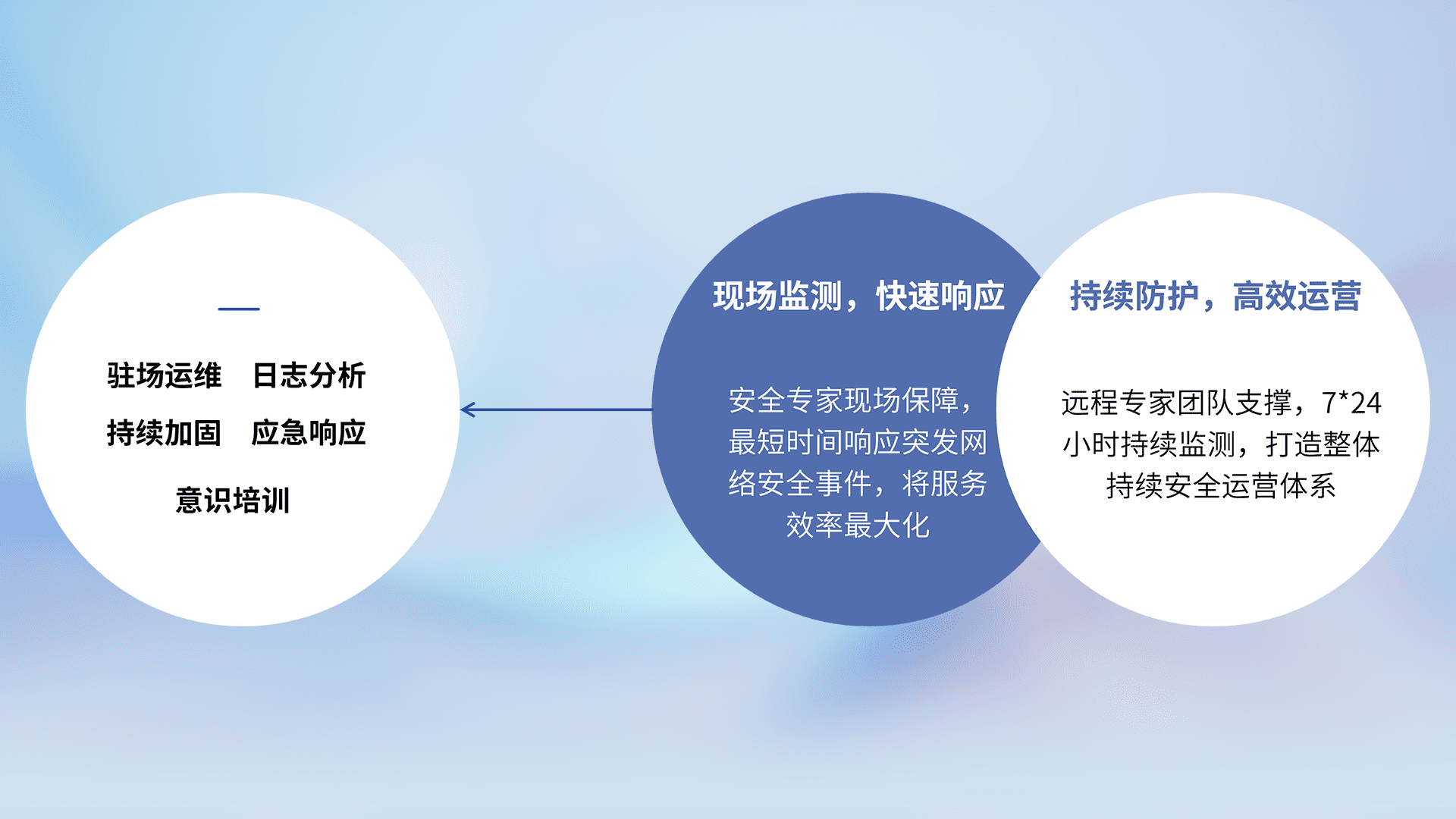 针对客户行业特性,,,,提供专属的一站式安全管理服务,,,帮助客户全面感知网络空间威胁,,,,通过安全专家的线上、、、线下防护支持,,,实现风险闭环,,将安全保障常态化,,为客户打造常态化安全运维运营服务。。。